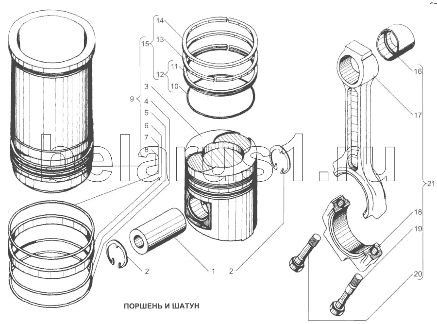 Каталог запасных частей к технике: ЯМЗ-7511. Поршень и шатун
