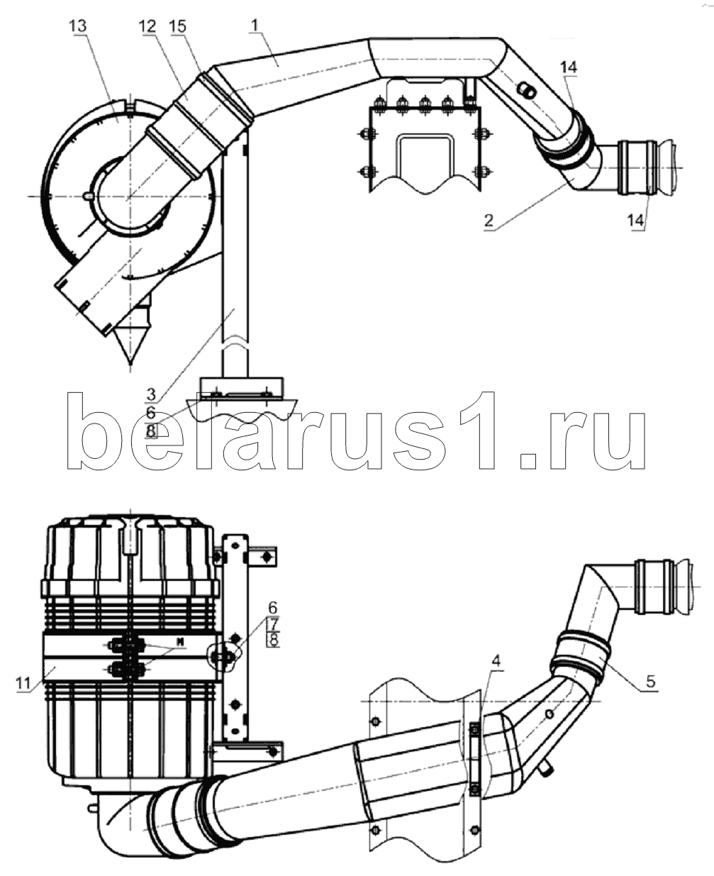 Каталог запасных частей к технике: МТЗ 2122.3/2122.4. Установка воздухоочистителя