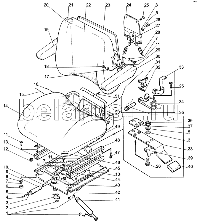 Каталог запасных частей к технике: МТЗ-1005. Сиденье водителя
