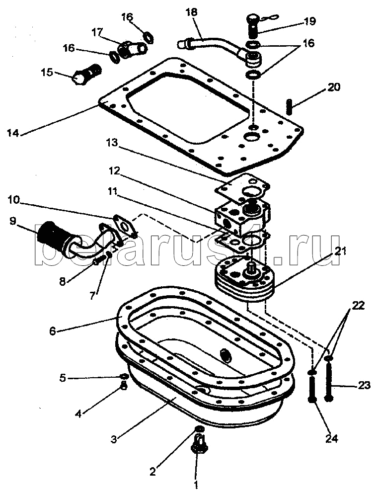 Каталог запасных частей к технике: ПТЗ K-744P1. Поддон коробки передач с насосом
