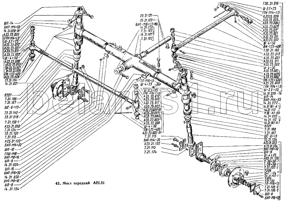 Каталог запасных частей к технике: ВТЗ Т-25А. Мост передний